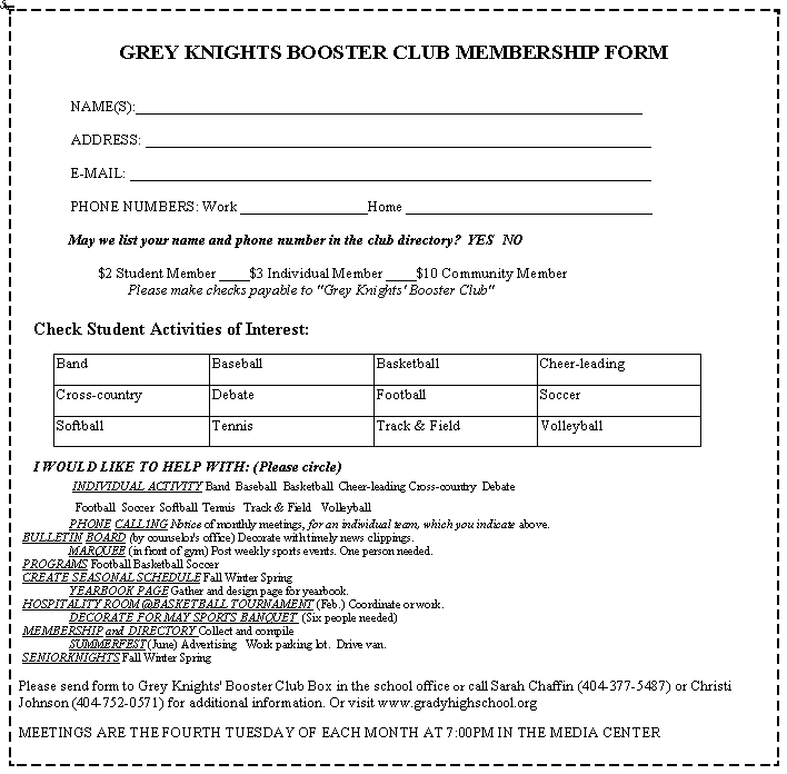 - Booster Club Meeting September 11, 2001 6:00 PM (before PTSA Meeting) in the GHS Gymnasium.