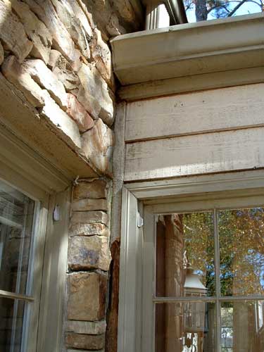 Water has been getting there for a long time Not too much though. Ehough I guess. May need some clever flashing against the stone. We'll keep a close eye on it.