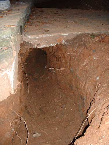 Thought they were gong to cut the sidewalk but while Dave was gone, the crew just dug right under it. Undermined sidewalks are likely to crack. It's hard to compact what you put back underneath.
