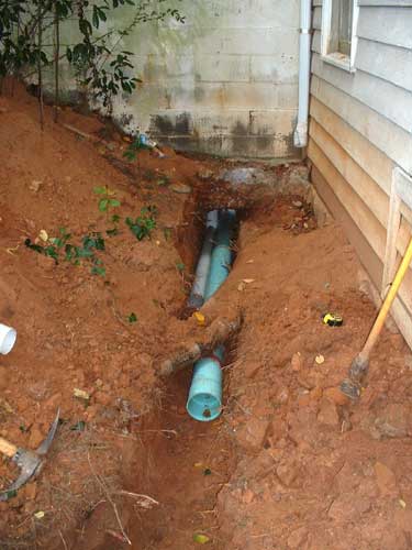 The downpipe tunnels under the foundation and just "keeps on getting it up."
